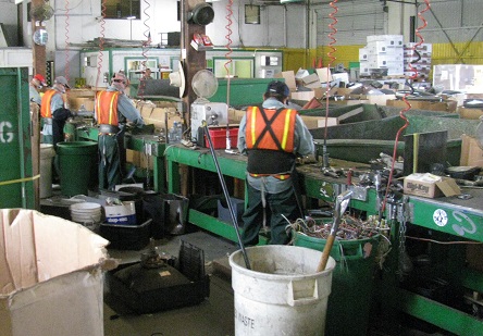 Workers disassemble e-waste in Paramount, Calif., on September 6, 2013